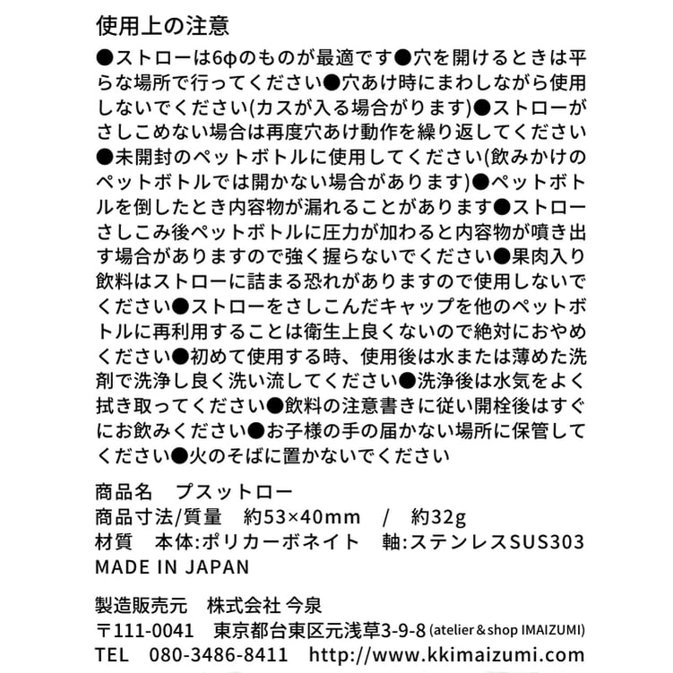 ※領収書但書は『 ペットボトルキャップ穴あけ具プスットロー 〇点 』と記載されます(変更不可)